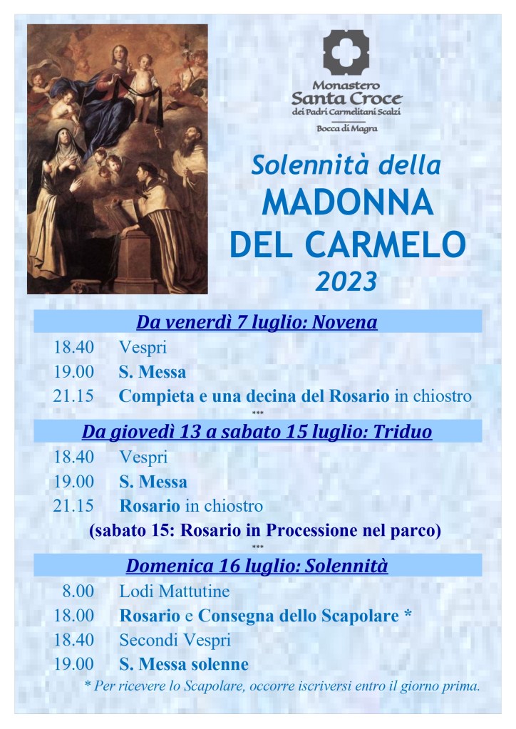 come ogni anno, il 16 luglio i Carmelitani festeggiano la solennità della Beata Vergine Maria del Monte Carmelo. Per questa occasione, i frati del Caffè carmelitano condividono con voi l’invito a partecipare alle celebrazioni.